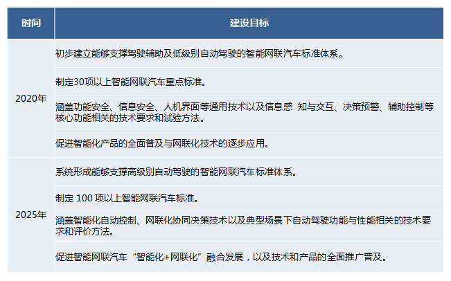 12月29日,工信部和国标委联合印发《国家车联网产业标准体系建设指南(智能网联汽车)的通知》。通知指出,根据智能网联汽车技术现状、产业应用需要及未来发展趋势,分阶段建立适应我国国情并与国际接轨的智能网联汽车标准体系: